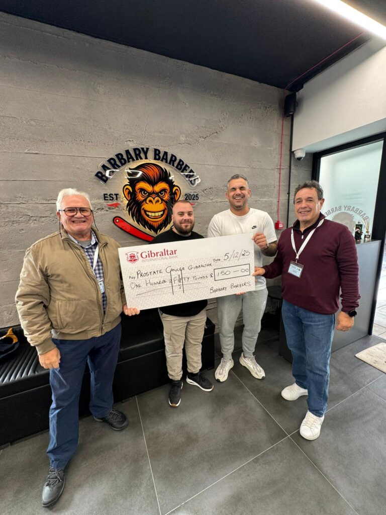 The cheque presentation took place at the Barbary Barbers premises, where representatives from Prostate Cancer Gibraltar were welcomed by the barbershop team. The occasion reflected not just the donation itself, but the unity and goodwill behind it.