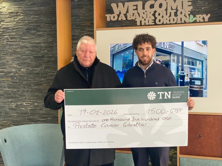 Daniel Jurado and Trusted Novus Bank Supports Prostate Cancer Gibraltar with £1,500 Donation Prostate Cancer Gibraltar is delighted to thank Daniel Jurado and Trusted Novus