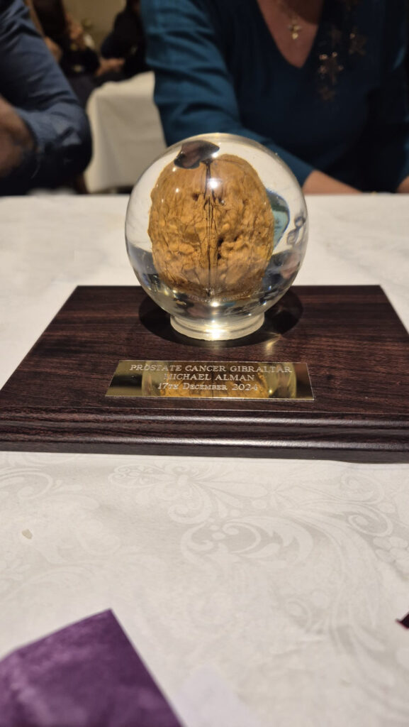 Michael has been a pillar of our charity, dedicating years to raising awareness and supporting our cause. To mark the occasion and express our heartfelt gratitude, we presented Michael with a special gift – a walnut encased in crystal with a personalised inscription, symbolising his unwavering commitment to the Walnut Campaign and our mission.